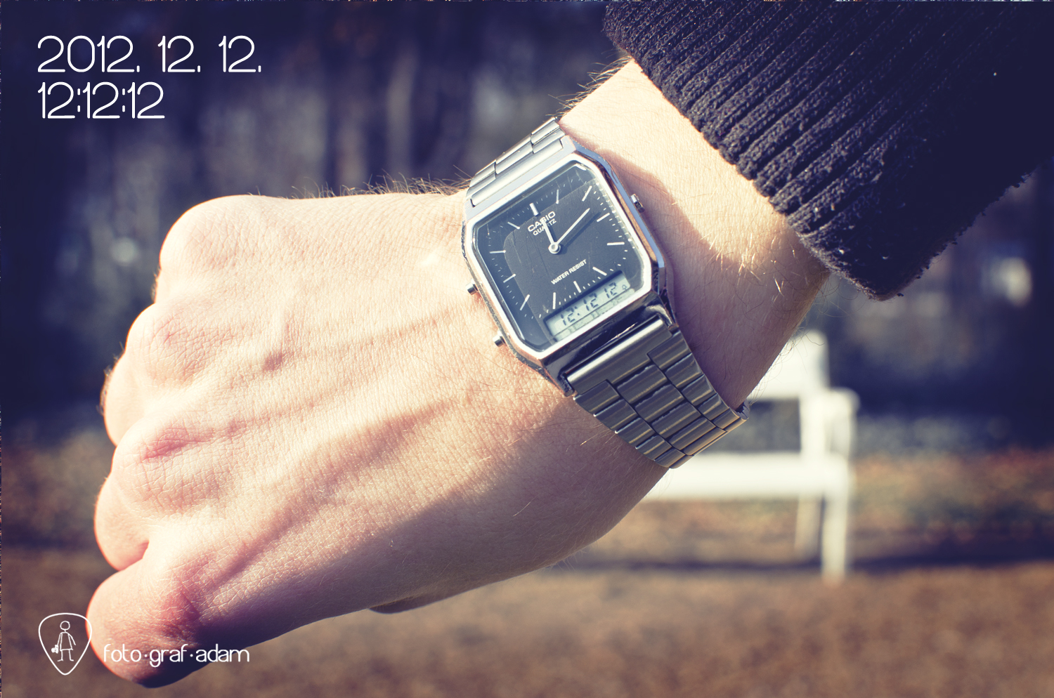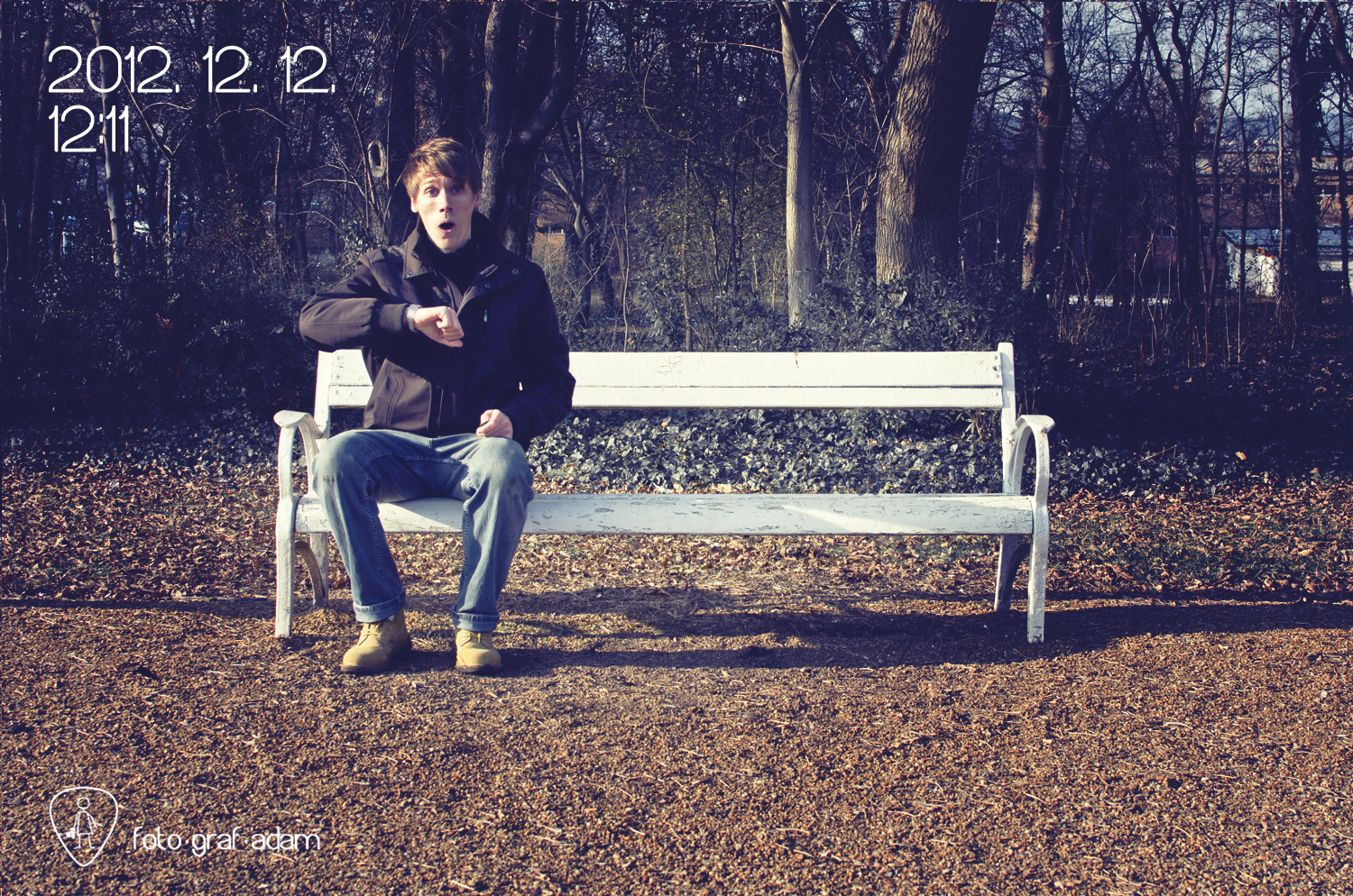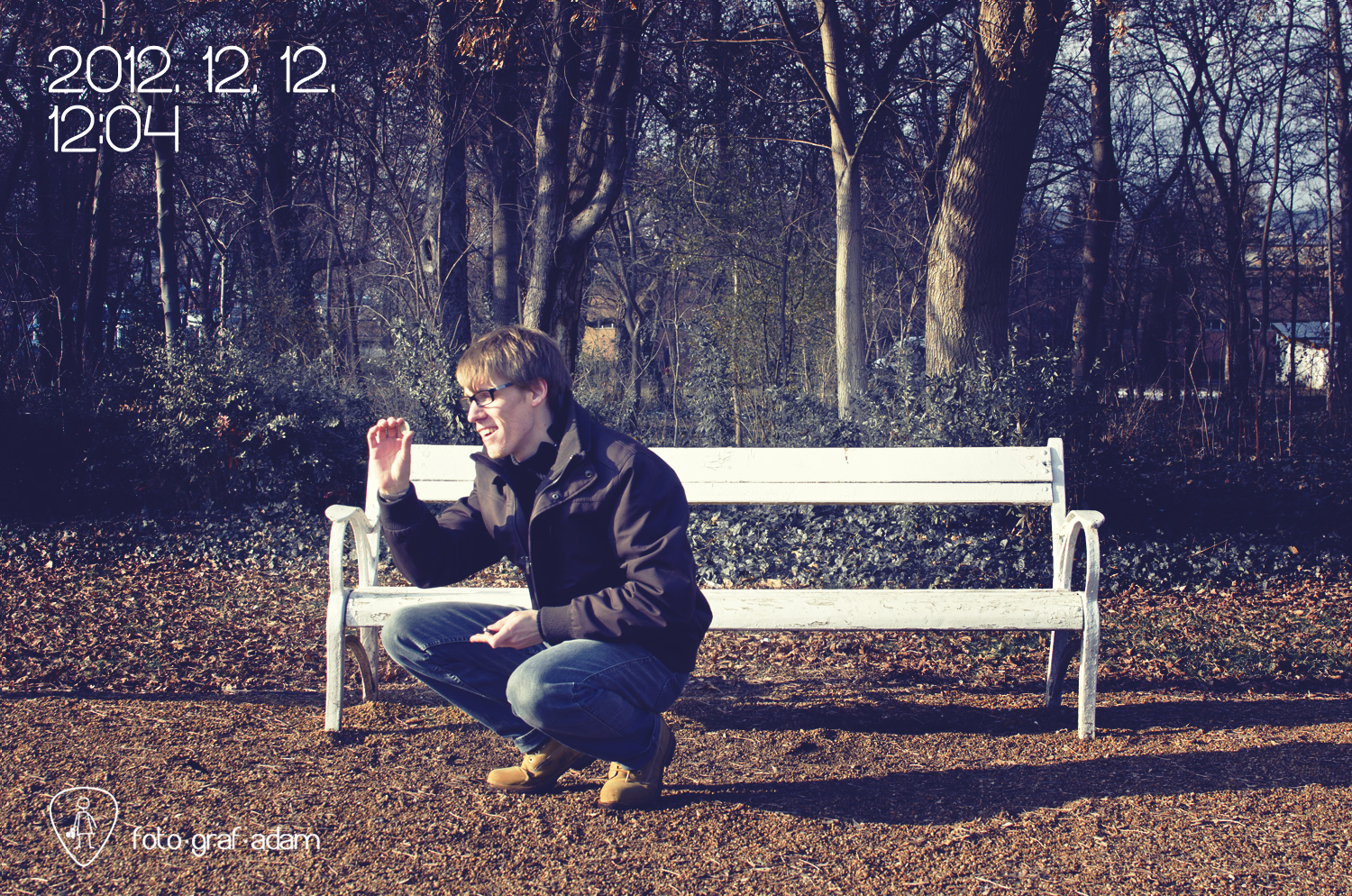 Ahogy ígértem, a csupa 12-esből álló dátumhoz tartozó projektem werk bejegyzése jön. Most nem részletezném a technikai megoldásokat, egyszerűen emlékezetessé szerettem volna tenni ezt a különös időpillanatot, ha már nem lesz több hasonló az életemben. Napokat agyaltam, miként csináljam ezt, eredetileg azt terveztem, hogy 12:12 perckor az első 12 másodpercben csinálok egy sorozatfelvételt valami mozgó tárgyról és annyi, de rájöttem, hogy abban nincs sok ötlet. De a másodperceket percekre cserélve már temérdek lehetőségem támadt és kora reggel gondoltam ki a 12-ből 6 képet, amihez a kellékeket gyorsan szobatársaktól és Laci bácsitól, a portástól szereztem be. Egész nap cipeltem őket, de így utólag nagyon megérte. Rengeteget nevettem közben. Ugyan bármikor átírhattam volna dátumot a gépben, mégis az volt a lényeg, az volt a játék az egészben, hogy tényleg 12 perc alatt készítem el, percenként más képet alkotva. A montázst már felraktam, íme most a képek nagyban és néhány werk fotó a helyszínről. (Katt a továbbra)