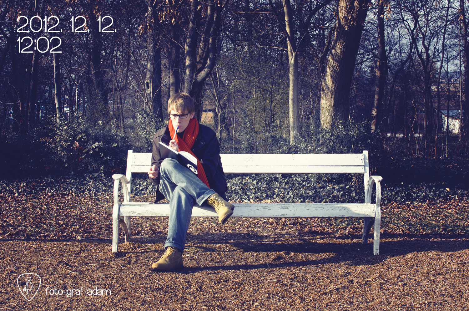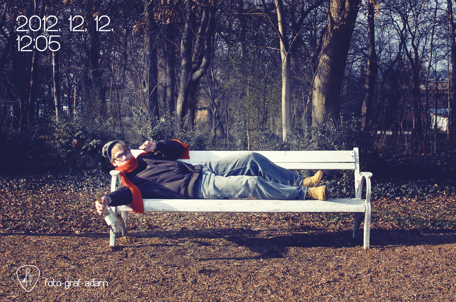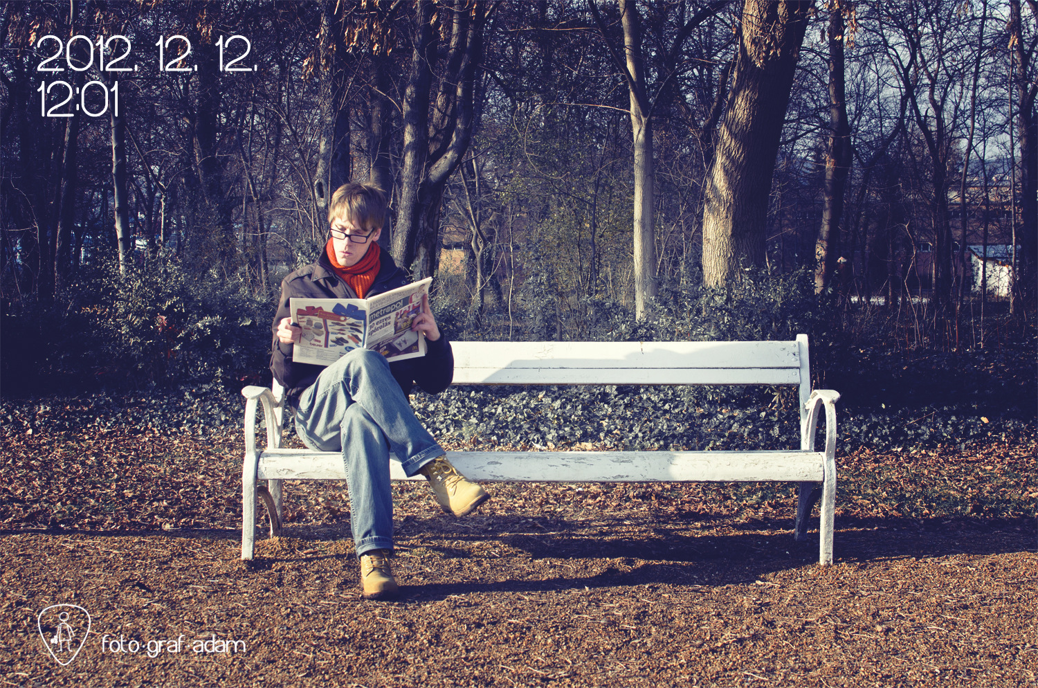 Ahogy ígértem, a csupa 12-esből álló dátumhoz tartozó projektem werk bejegyzése jön. Most nem részletezném a technikai megoldásokat, egyszerűen emlékezetessé szerettem volna tenni ezt a különös időpillanatot, ha már nem lesz több hasonló az életemben. Napokat agyaltam, miként csináljam ezt, eredetileg azt terveztem, hogy 12:12 perckor az első 12 másodpercben csinálok egy sorozatfelvételt valami mozgó tárgyról és annyi, de rájöttem, hogy abban nincs sok ötlet. De a másodperceket percekre cserélve már temérdek lehetőségem támadt és kora reggel gondoltam ki a 12-ből 6 képet, amihez a kellékeket gyorsan szobatársaktól és Laci bácsitól, a portástól szereztem be. Egész nap cipeltem őket, de így utólag nagyon megérte. Rengeteget nevettem közben. Ugyan bármikor átírhattam volna dátumot a gépben, mégis az volt a lényeg, az volt a játék az egészben, hogy tényleg 12 perc alatt készítem el, percenként más képet alkotva. A montázst már felraktam, íme most a képek nagyban és néhány werk fotó a helyszínről. (Katt a továbbra)